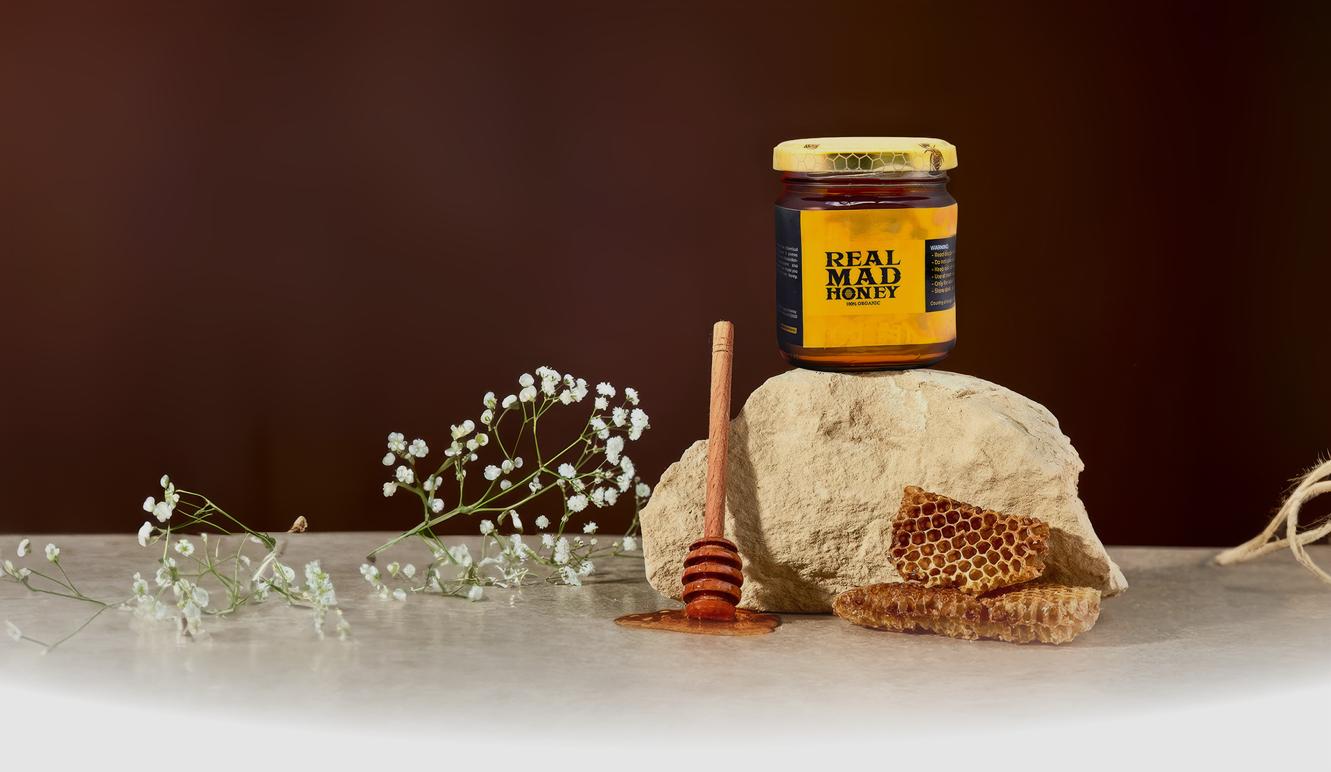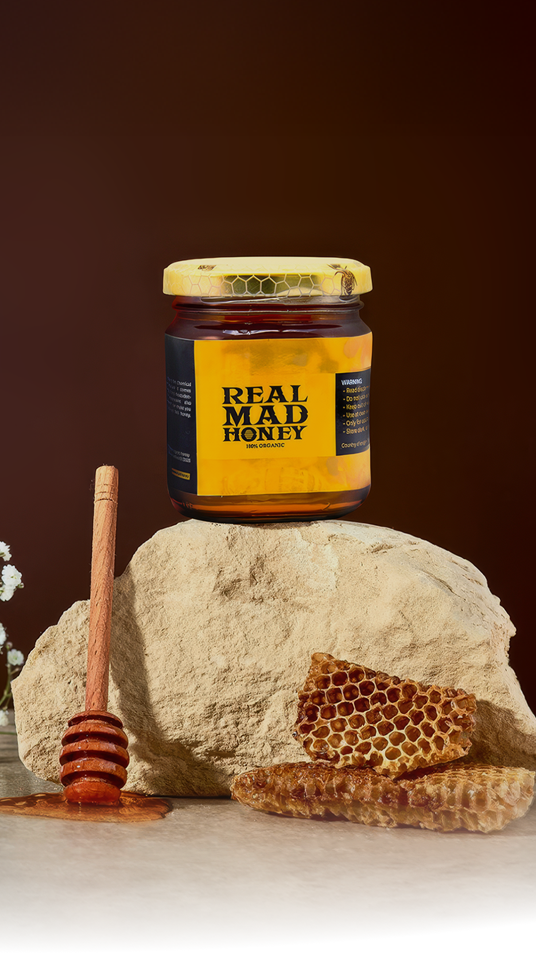 Mad honey has been used traditionally as The sweetest taste of mystery on earth. A rare honey, treasured in the mountains, wrapped in legend and story. And this secret sauce is 100% natural.