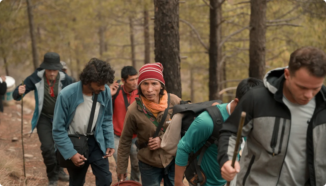 Then they carry everything back. Down steep mountain trails. Through forests. For hours.